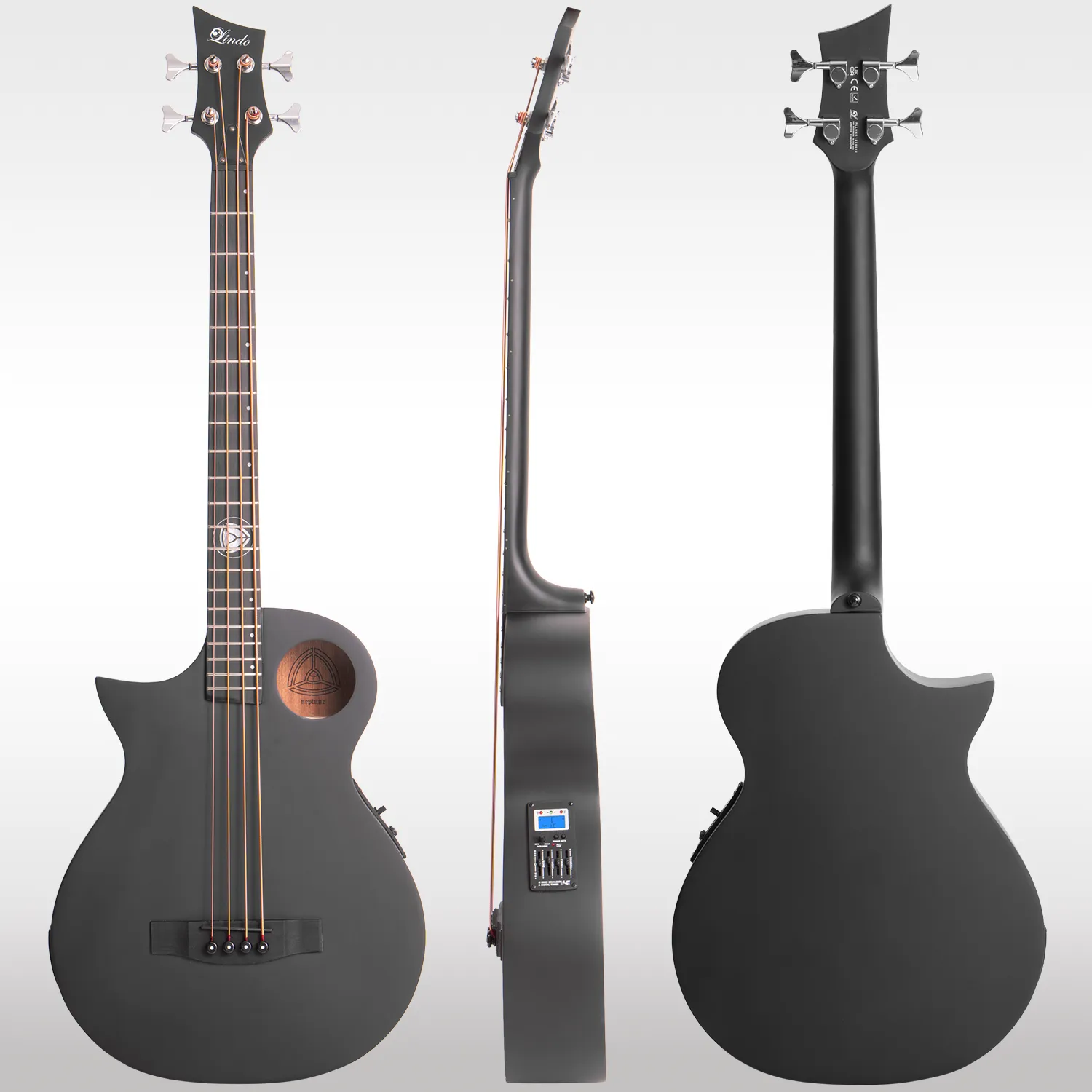 The Lindo Neptune V3 electro acoustic bass offers exceptional sound quality both acoustically and amplified. Equipped with an onboard F-4T preamplifier, this bass guitar provides EQ controls for bass, middle, treble, and presence, as well as a master volume and low battery indicator. The backlit LCD and LED illuminated notes also make it easy to use the chromatic tuner in any lighting condition. With a dual 1/4″ jack and balanced XLR output, the Lindo Neptune V2 bass can be easily connected to an amplifier, mixing desk or audio interface for live performances or recording sessions. Suitable for all levels of players, the Neptune Bass is an excellent choice for learning, gigging, touring, or jamming with friends.Â