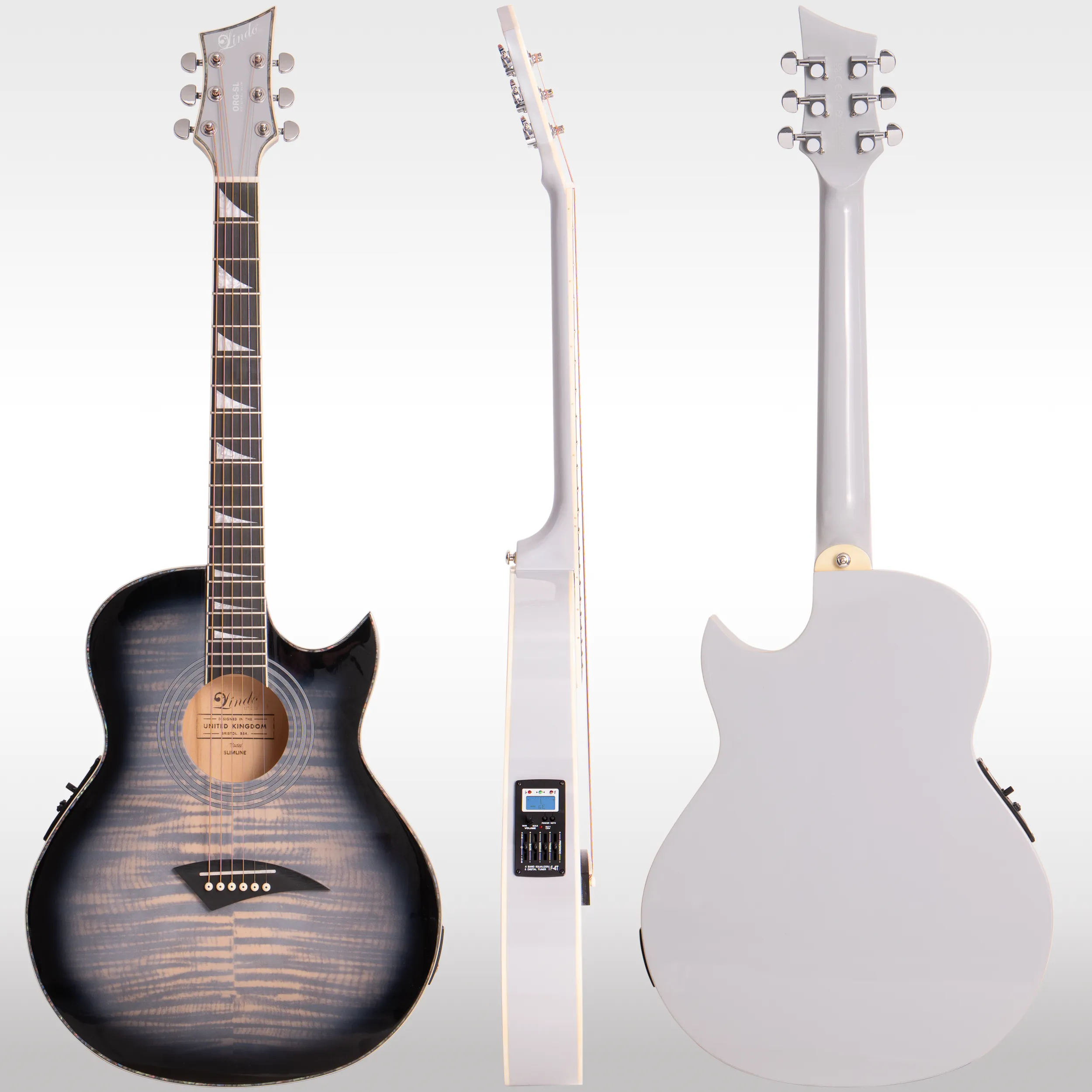 The Lindo ORG-SL Slimline Grey is a unique slim body electro acoustic guitar, meticulously designed by Lindo Guitars in Bristol, UK. Its sleek, lightweight construction, weighing approximately 2.2 kg, ensures exceptional comfort for players of all levels, making it ideal for both stage performances and extended practice sessions. The guitar’s modern grey finish and ergonomic Florentine cutaway design allow for effortless access to higher frets, blending style with practicality for discerning musicians. This model stands out as a flagship offering, combining innovative design with superior playability.